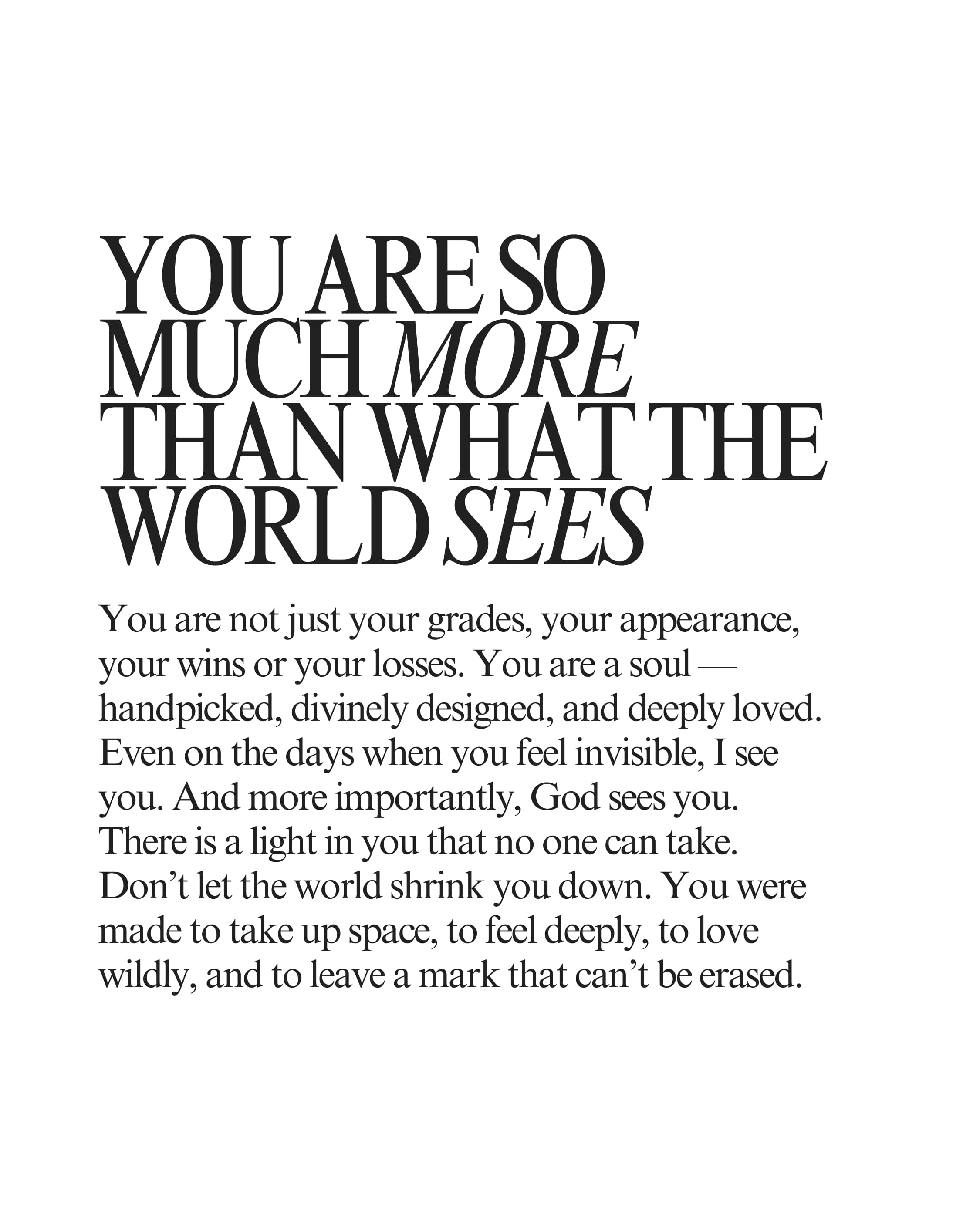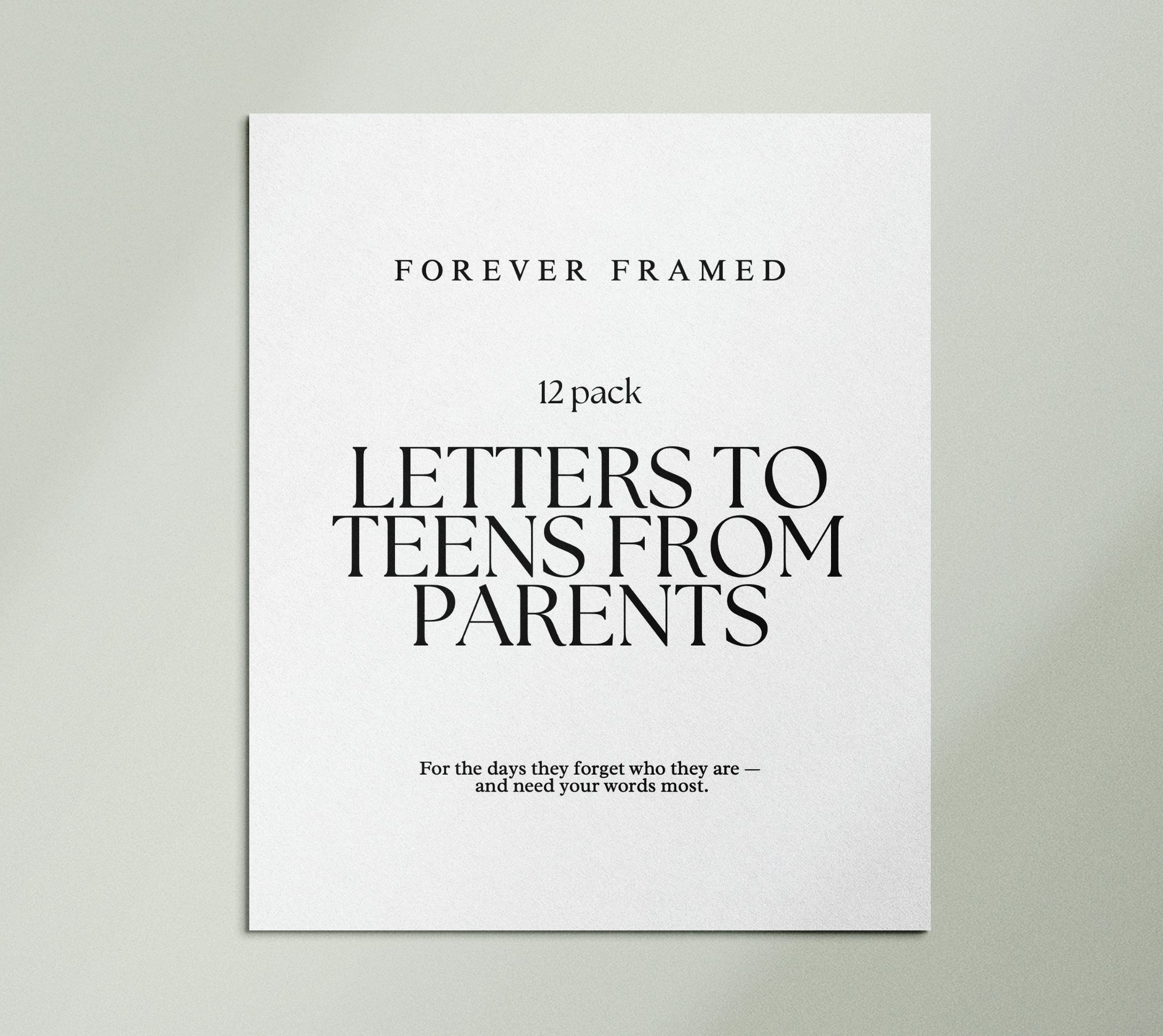 The teenage years are filled with change, questions, and big emotions—and in the middle of it all, your teen still needs to hear your steady voice of love. This set of 12 heartfelt 8x10 letters is written from the perspective of a parent to their teenager, filled with encouragement, guidance, and faith for the journey ahead.