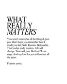 This set of 12 heartfelt 8x10 letters is written from the voice of a grandparent to a grandchild—filled with love, encouragement, and the wisdom that only comes from a life well-lived. Each month brings a new letter to display in your Forever Frame, helping grandchildren feel close even when miles apart.