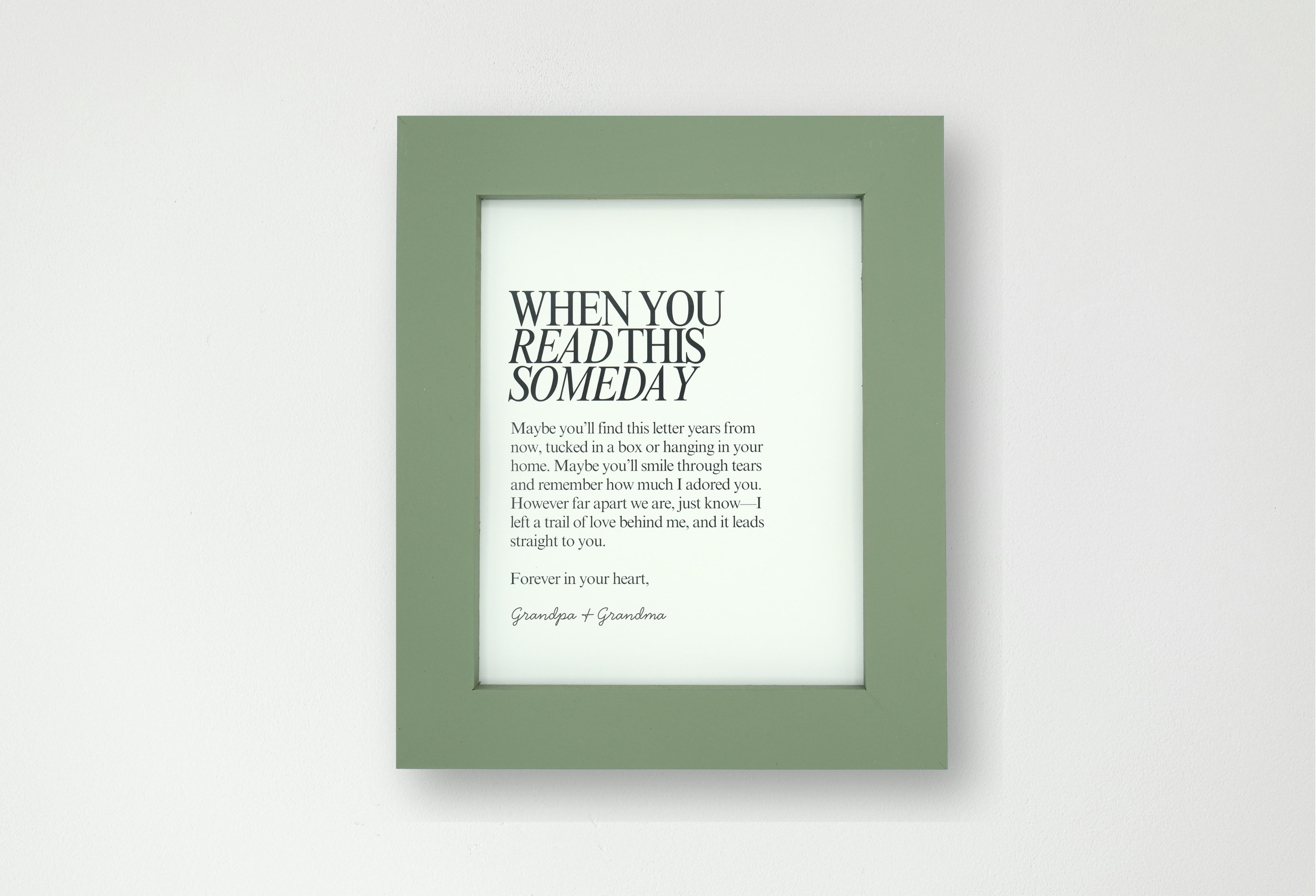 Each month, you can add a new letter, drawing, or memory—reminding your children (or grandchildren) that they are deeply loved and never alone. Over time, your Forever Frame becomes a living story of encouragement, faith, and connection—a treasure your family will cherish for generations.