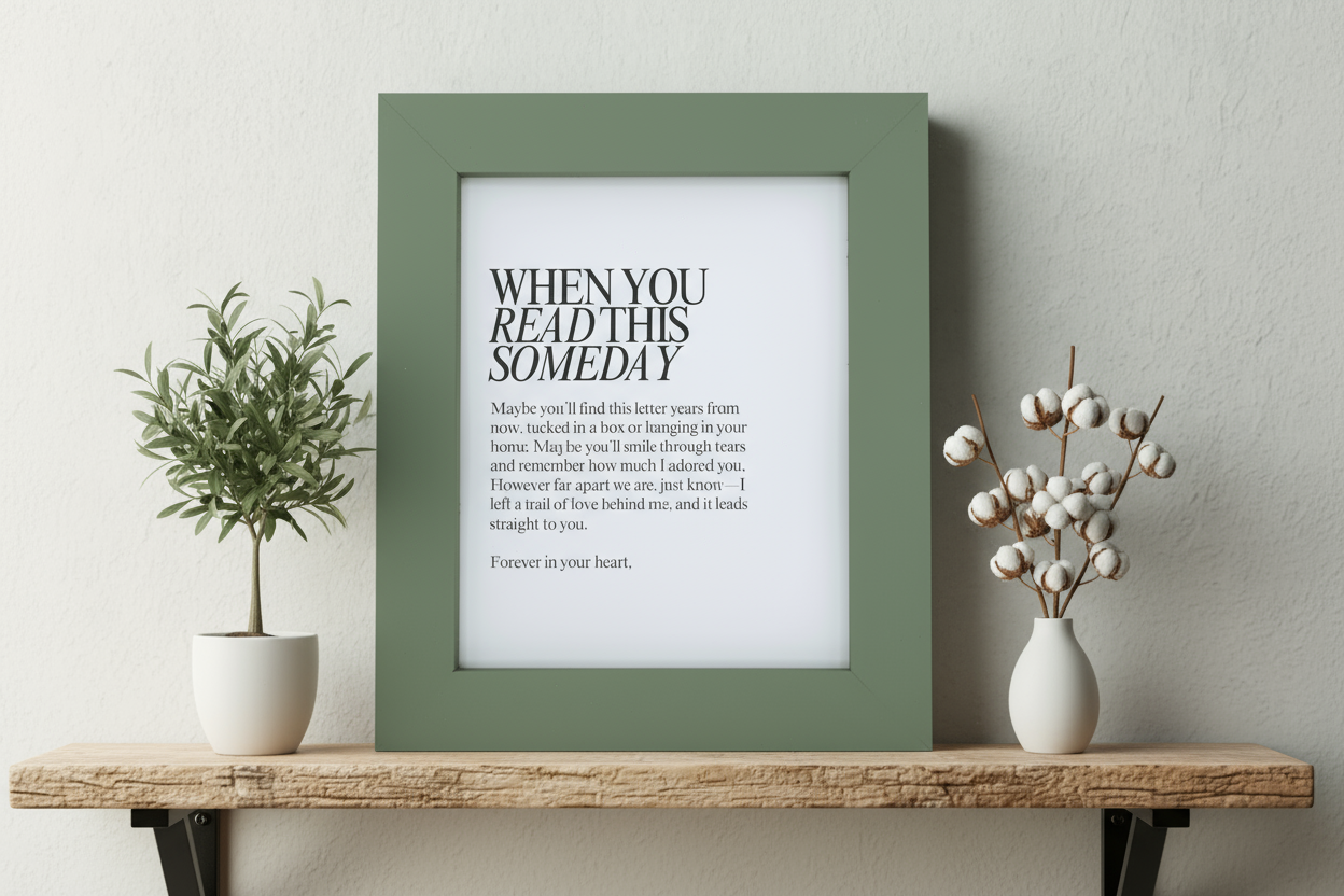 Bring love into the center of your home with the Forever Frame 8x10—because words from the heart deserve a place on the wall, not hidden in a drawer.
