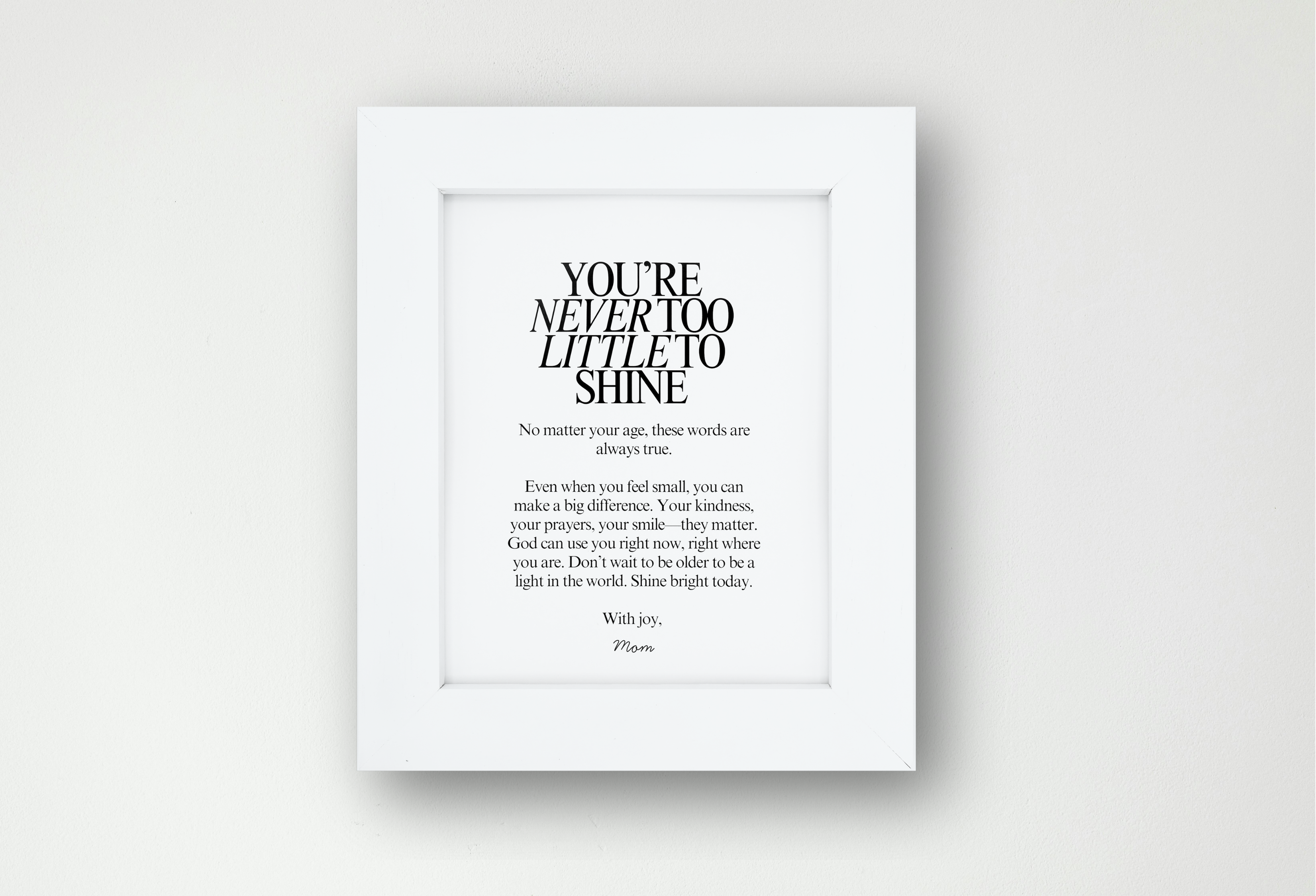Each month, you can add a new letter, drawing, or memory—reminding your children (or grandchildren) that they are deeply loved and never alone. Over time, your Forever Frame becomes a living story of encouragement, faith, and connection—a treasure your family will cherish for generations.